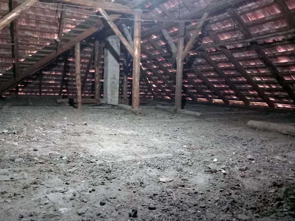 A padlás felülete legyen nagyjából jarható és lomoktól/használati tárgyaktól mentes! Az ideális az, ha a padlás érkezésünkkor teljesen üres, mint az alábbi képen is látható, hiszen a födém (mennyezet) teljes felületét szigeteljük!